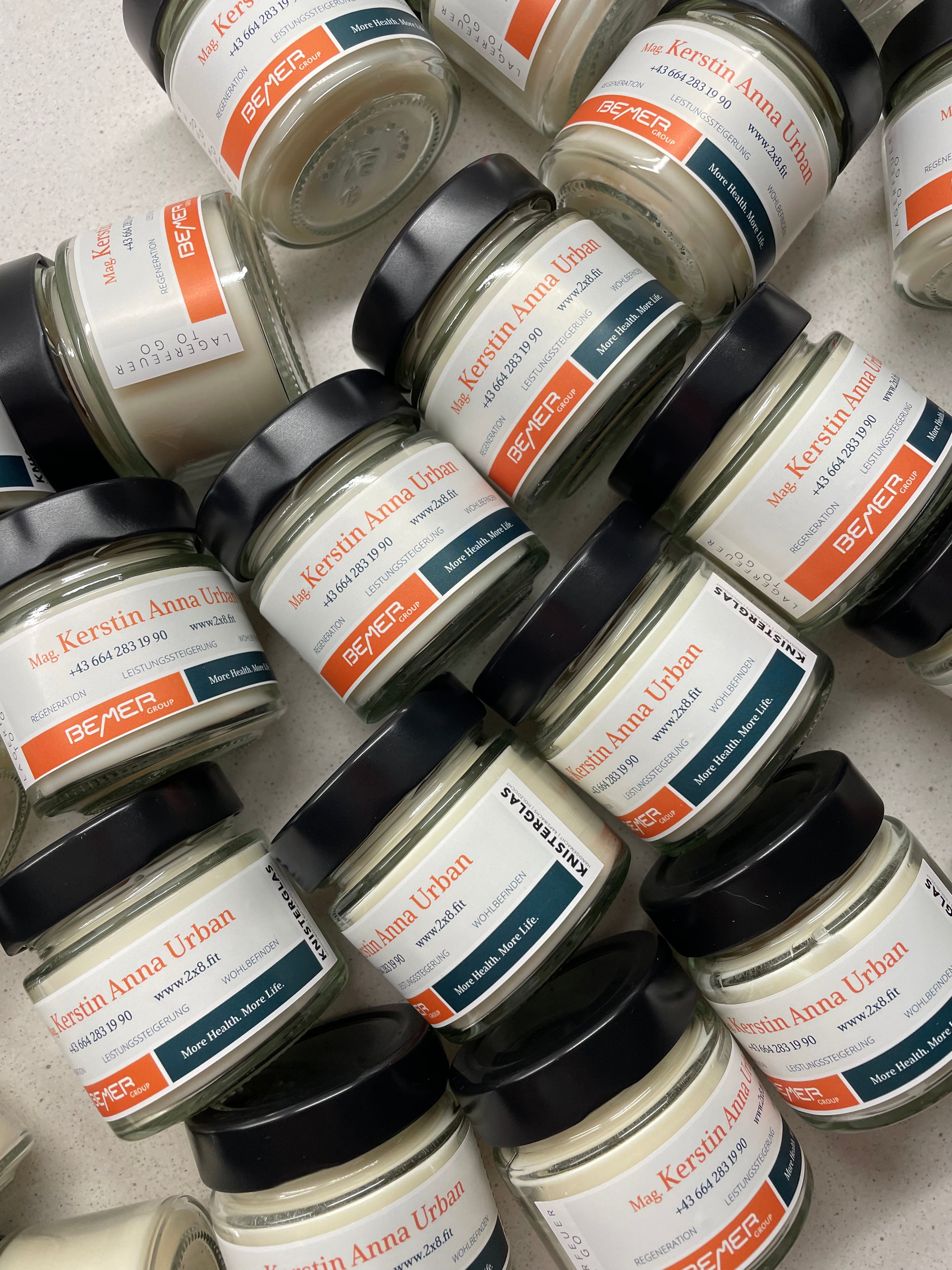 Jede Kerze wird individuell nach deinen Angaben gefertigt – mit deinem Logo, Namen oder einem Schriftzug. So entsteht ein einzigartiges Produkt, das Eindruck hinterlässt.